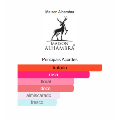 La Charmante Eclatant de Maison Alhambra é um perfume Floral Frutado Gourmet Compartilhável. Esta é uma nova fragrância. La Charmante Eclatant foi lançada em 2025. As notas de topo são: Framboesa e Groselha Preta. As notas de coração são: Rosa e Peônia. As notas de fundo são: Almíscar e Baunilha.