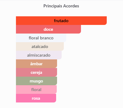 Notas de topo: Frutas vermelhas, açúcar derretido, pêssego maduro