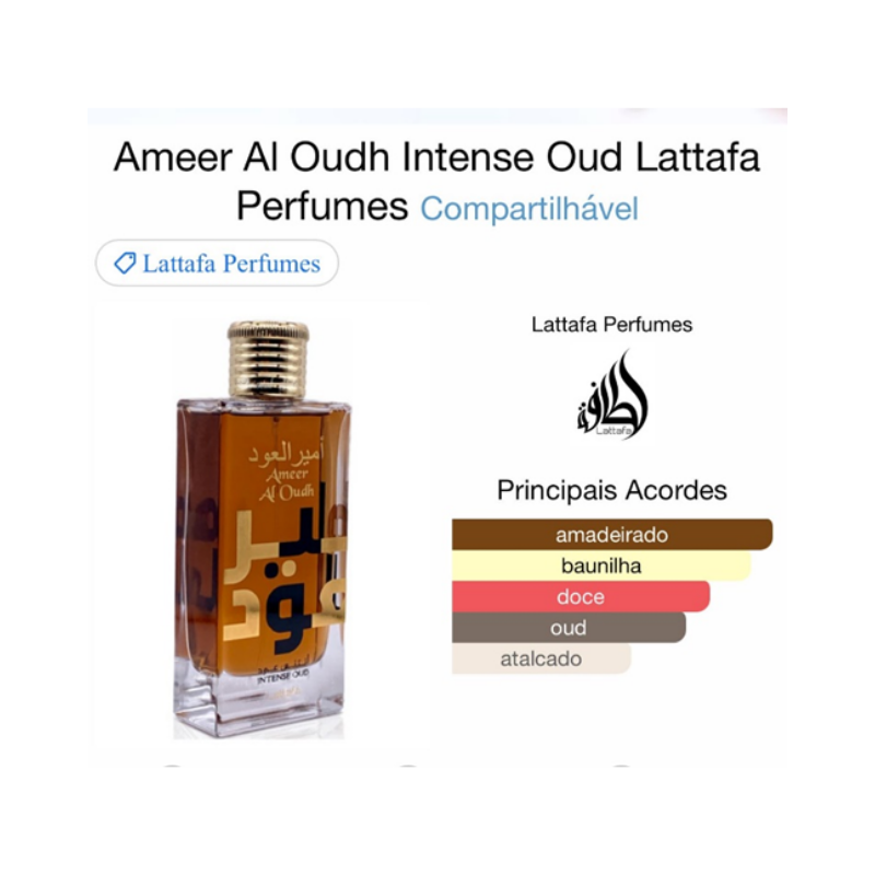 Ameer Al Oudh Intense Oud de Lattafa Perfumes é um perfume Oriental Compartilhável. Ameer Al Oudh Intense Oud foi lançada em 2021. As notas de topo são: Notas Amadeiradas e Agarwood (Oud). As notas de coração são: Açúcar e Baunilha. As notas de fundo são: Agarwood (Oud), Sândalo e Notas Herbais.